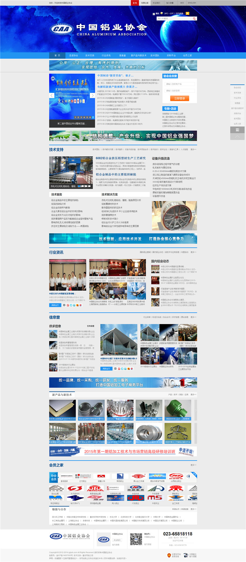 Project Description 中国铝业协会是由中国国内主要从事铝合金铸造、板、带、箔、管、棒、型材、锻件等企业组成的行业协会组织,协会由国内具有一定规模和影响力的企业发起,已有三百多家会员企业,目前还有很多企业踊跃希望加入,协会现有会员企业年销售额1000多亿元人民币,协会会员企业分布在国内华东、华南、西南、环渤海、东北、胶东半岛等中国经济活跃地区;产品涵盖航空航天、兵器装... Official website address 神农架http://www.caa2014.com I want to share